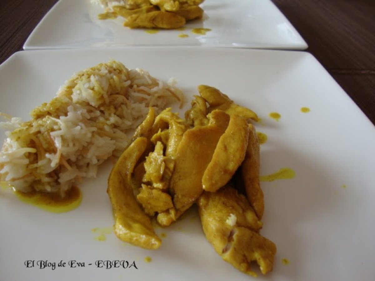 Pollo con curry y leche de coco acompañado de arroz con fideos PlatoFácil50 min Enviar esta receta a un amigo Imprimir esta página Preguntar al autor Publicar la foto de esta receta Ingredientes 4 3 pechugas de pollo grandecitas 1 brick pequeño de leche de coco 1 cucharada sopera de curry o de colombo sal, aceite y un par de hojitas de salvia 1 vaso y medio tamaño agua de arroz basmati 1/2 vaso de fideos finos 2 dientes de ajo sal , aceite y comino