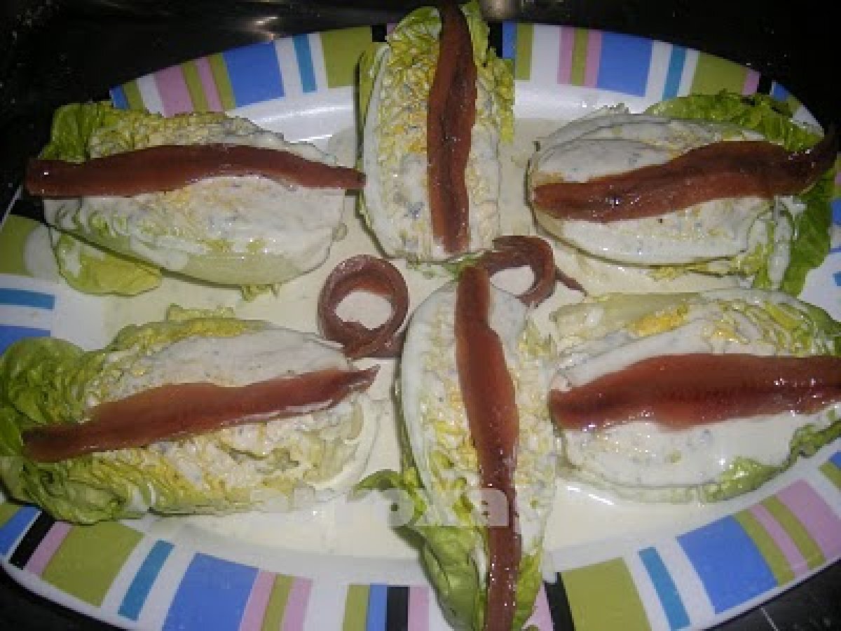 Cogollos al roquefort con anchoas AperitivoFácil50 min Enviar esta receta a un amigo Imprimir esta página Preguntar al autor Publicar la foto de esta receta Ingredientes 5 3 cogollos de Tudela 1 lata de Anchoas del Cantábrico de Conservas Serrats 200 gr de queso Roquefort 1 brick de nata para cocinar