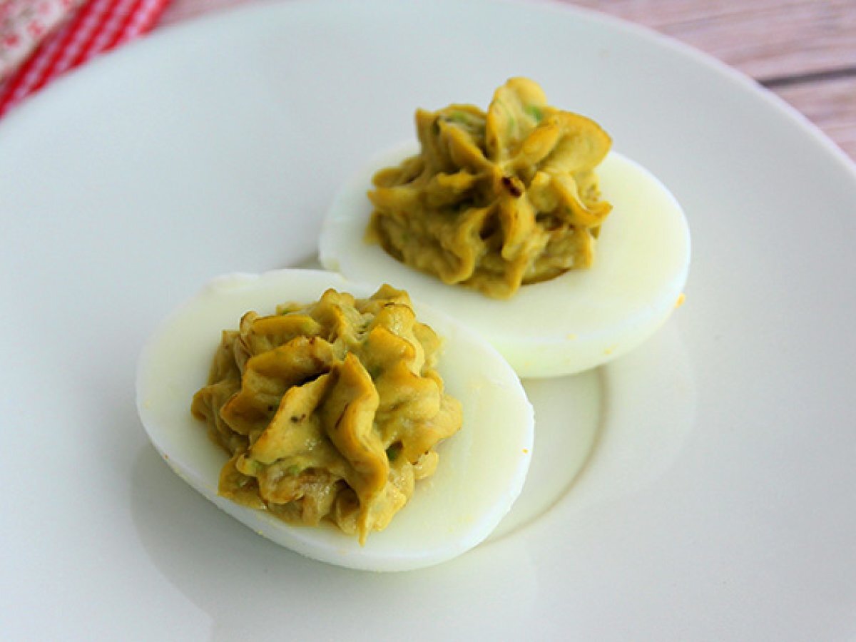 Seguramente conoces los huevos rellenos (huevos mimosa). Estos huevos son duros, bien adornados con mayonesa y con una decoración sencilla y refinada. Y si variamos los sabores para cambiar? Simplemente agrega 1 aguacate. Le dará un sabor suave y un color original. Una idea fresca y fácil de proponer a tus invitados para un aperitivo ;)
