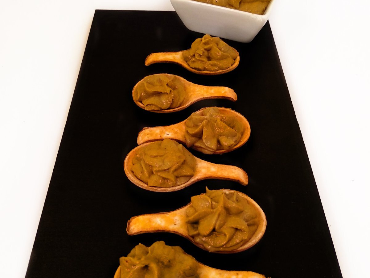 Y aprovechando que tenía una lata de mejillones en escabeche he preparado este paté de conservas de pescado. Las sardinillas pueden sustituirse por sardinas siempre que sean en tomate. Los mejillones en escabeche no son sustituibles, en mi opinión es la gracia del paté. He intentado ser un poco artística al presentar el paté pero tengo poca gracia, la verdad. Utilicé una manga pastelera y la boquilla 2D Wilton, para formar como unas rosas sobre las cucharillas de galleta.