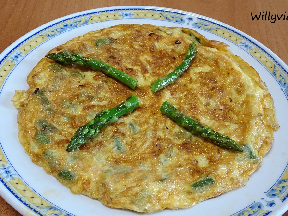 Tortilla de espárragos trigueros con cebolla