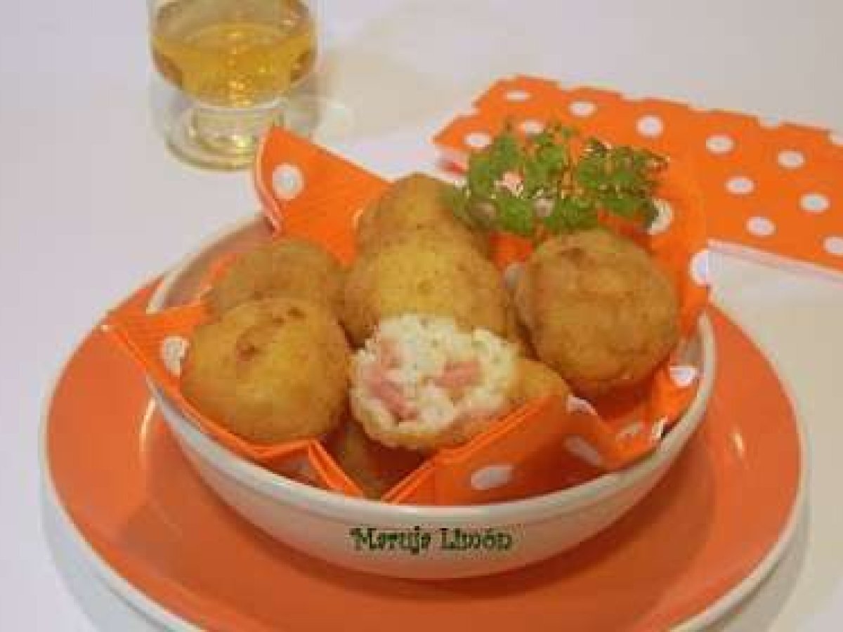 Bolitas de arroz con beicon y queso EntranteMedio30 min1415 Kcal Enviar esta receta a un amigo Imprimir esta página Preguntar al autor Publicar la foto de esta receta Ingredientes 1 150 g de arroz cocido 6 cucharadas de queso rallado 100 g de beicon 2 dientes de ajo 1 huevo Pan rallado Aceite de oliva y sal Costo estimado: 2.76Euros€ (2.76€/porción)
