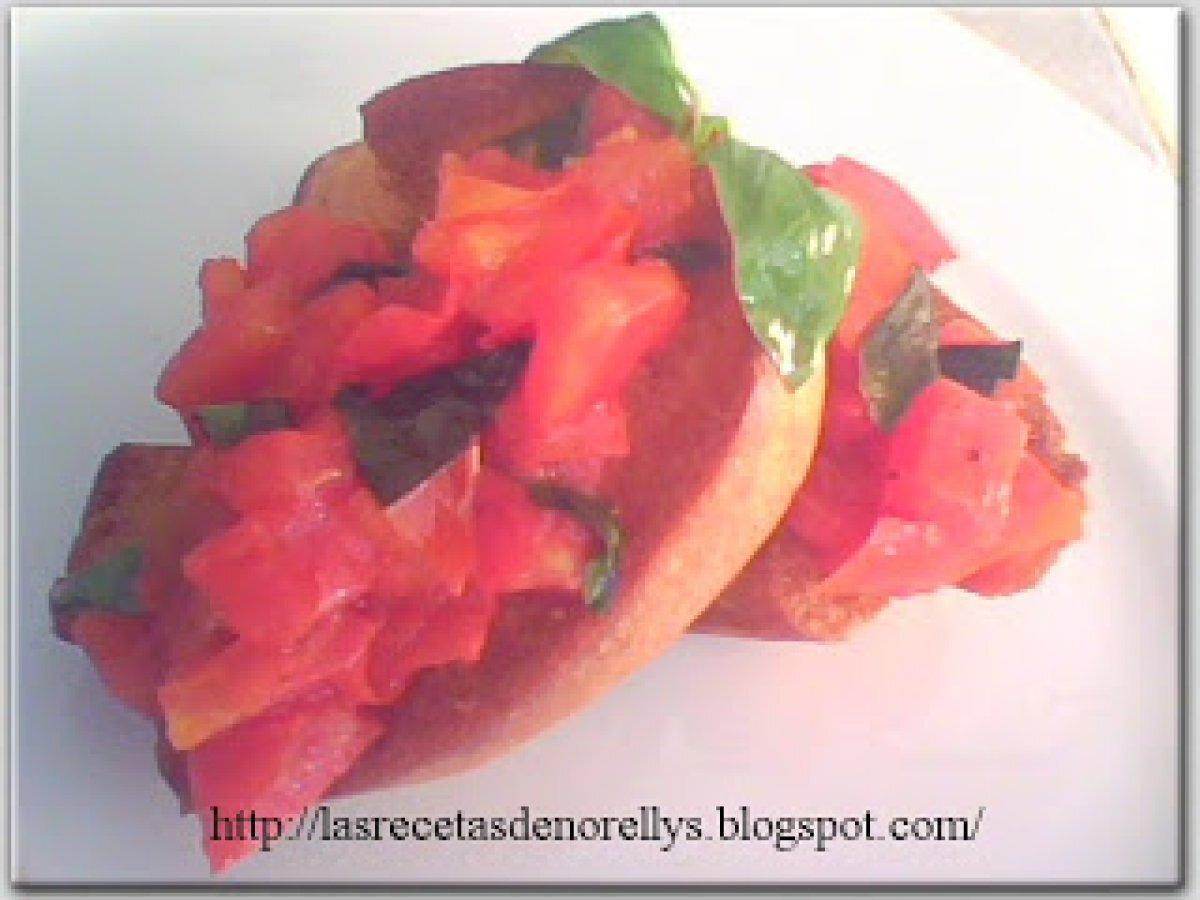 Bruschettas fritas con tomates salteados y albahaca, inspirado en julie powell EntranteFácil35 min702 Kcal Enviar esta receta a un amigo Imprimir esta página Preguntar al autor Publicar la foto de esta receta Ingredientes 2 ½ barra de baguette, cortado en bruschettas de 1 ½ cm ½ taza aceite de oliva extra-virgen 3 tomates bien maduros, cortados en cubos medianos 1 diente de ajo, brunoisse Sal, pimienta negra recién molida y pizca de azúcar. 2 cucharadas aceite de oliva Algunas hojitas de albahaca fresca troceaditas con las manos Costo estimado: 2.02Euros€ (1.01€/porción)