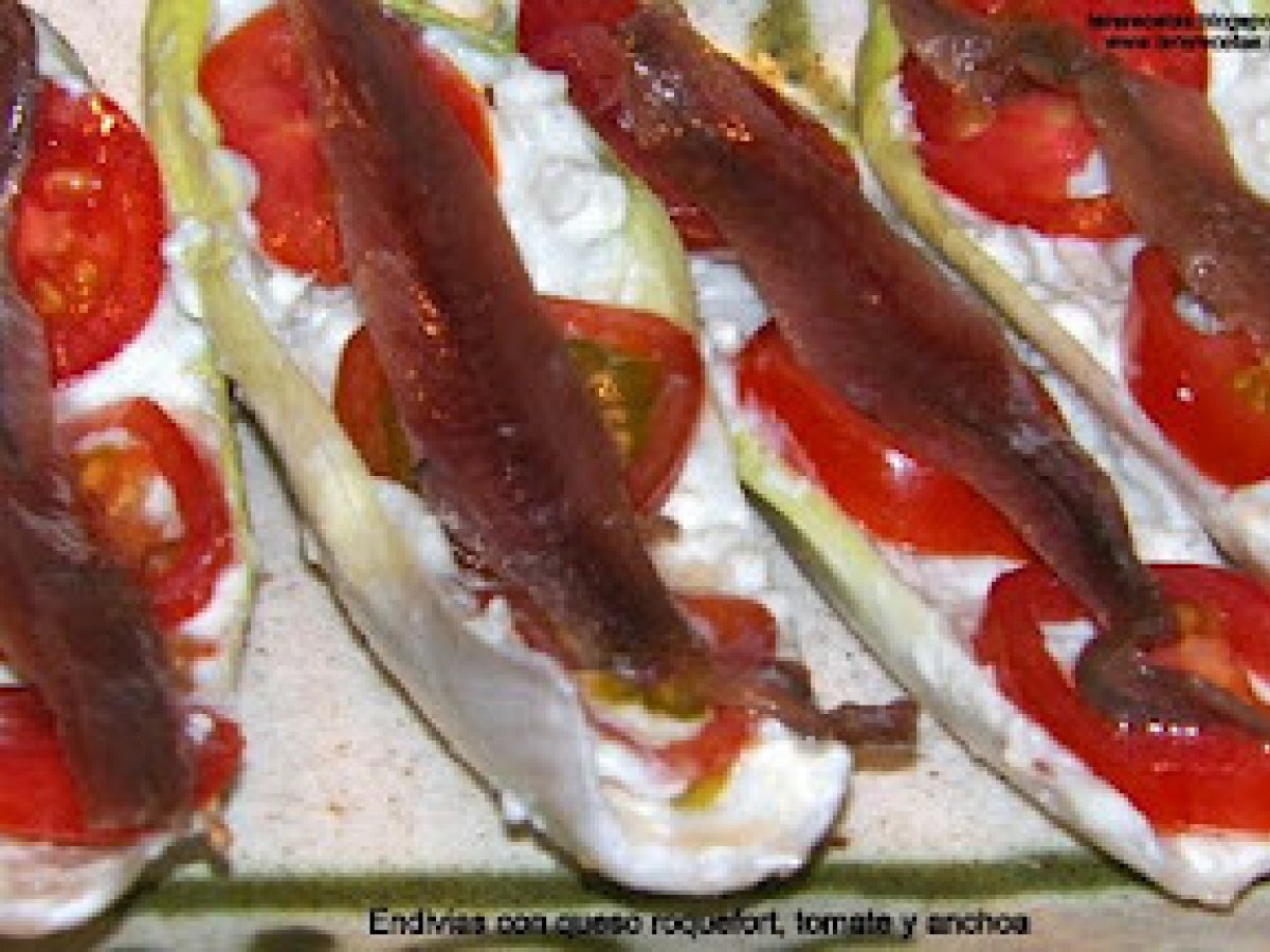 Endivias con queso roquefort, tomates y anchoas.