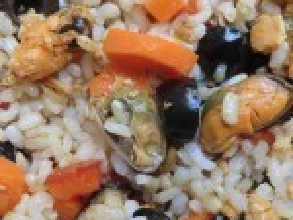 Ensalada de arroz con mejillones EntranteFácil10 min Enviar esta receta a un amigo Imprimir esta página Preguntar al autor Publicar la foto de esta receta Ingredientes 1 Arroz, mejillones, zanahoria, pimiento rojo y aceitunas negras