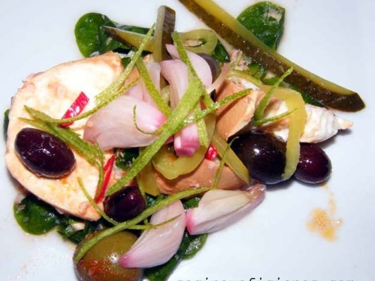 Ensalada de canónigos, salmorejo y mozarela ahumada EntranteFácil20 min10 Kcal Enviar esta receta a un amigo Imprimir esta página Preguntar al autor Publicar la foto de esta receta Ingredientes 1 1 mozarela ahumada (sino la tienes ahumada, utilizas una normal, aceitunas negras perlas del Guadalquivir, aceitunas empeltre aragonesas, aceitunas campo real, 2 cebolletas rojas en vinagre, 1 pepinillo agridulce, un puñado de canónigos por persona, una taza de café de salmorejo, guindilla, ralladura de limón verde. Costo estimado: 0.08Euros€ (0.08€/porción)