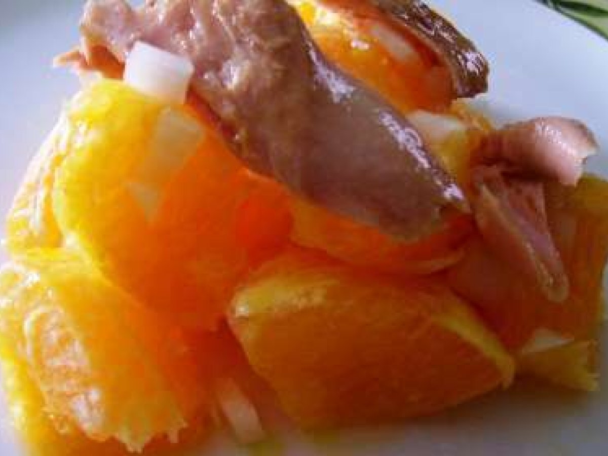 Ensalada de naranja y atún EntranteFácil15 min Enviar esta receta a un amigo Imprimir esta página Preguntar al autor Publicar la foto de esta receta Ingredientes 1 2 buenas naranjas 1 lata de atún o caballa 1 cebolleta Aceite de Oliva Vinagre Costo estimado: 3.04Euros€ (3.04€/porción)