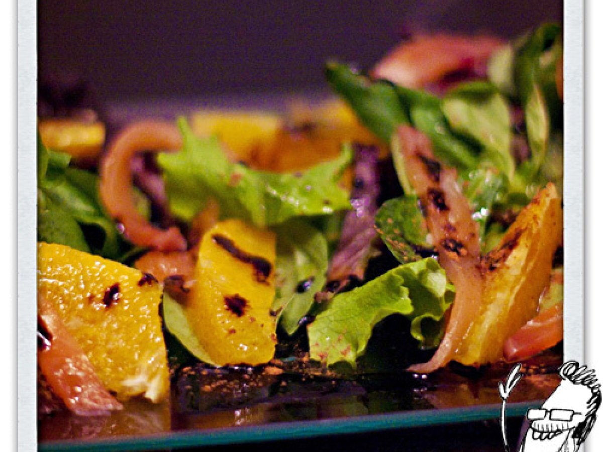 Ensalada de salmón y naranja EntranteFácil11 min Enviar esta receta a un amigo Imprimir esta página Preguntar al autor Publicar la foto de esta receta Ingredientes 1 1 naranja salmón ahumado, al gusto de cada uno, ¡pero sin pasarse! 1/2 bolsa de canónigos 1/2 bolsa de brotes tiernos Aceite de oliva Vinagre de Módena Sal maldon canela