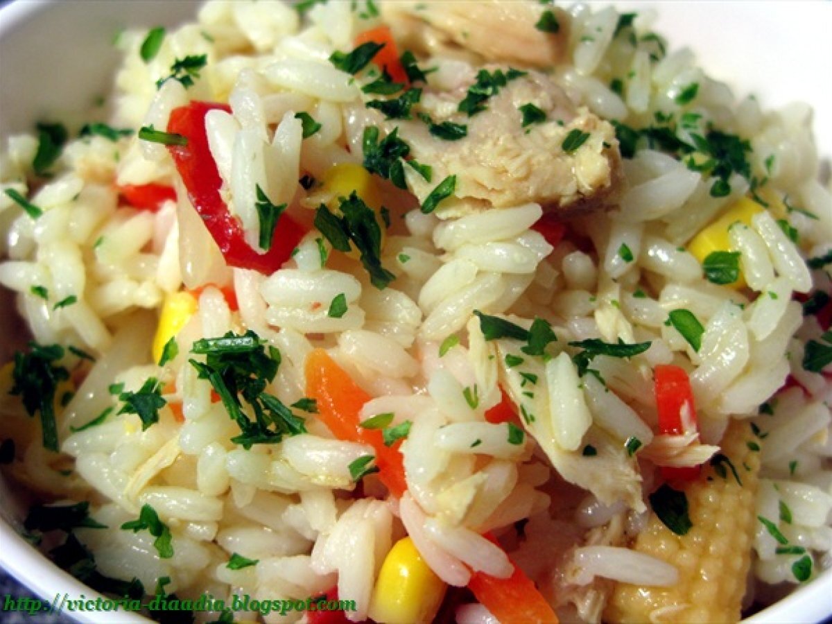 Ensalada mediterránea de arroz EntranteMedio50 min Enviar esta receta a un amigo Imprimir esta página Preguntar al autor Publicar la foto de esta receta Ingredientes 4 400 g de arroz vaporizado 1 bote de ensalada mediterránea "Bonduelle" 2 latas de atún en aceite 1 cucharada de perejil picado sal y aceite