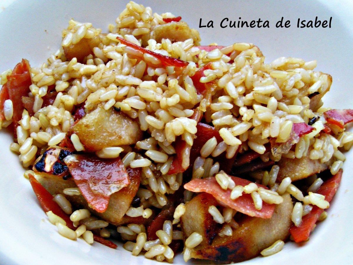 Ensalada tibia de arroz, jamón y pera EntranteFácil20 min Enviar esta receta a un amigo Imprimir esta página Preguntar al autor Publicar la foto de esta receta Ingredientes 3 2 peras grandes 2 botes de 125 gramos de arroz integral ya cocido (yo lo compro de la marca "Brillante") Unos taquitos de jamón Sal y pimienta Aceite de oliva