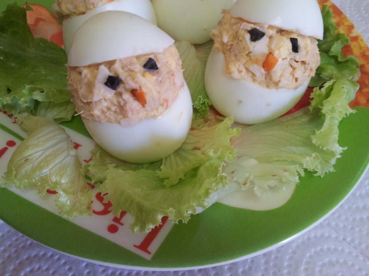 Huevos cocidos rellenos, un plato que se sirve frío.