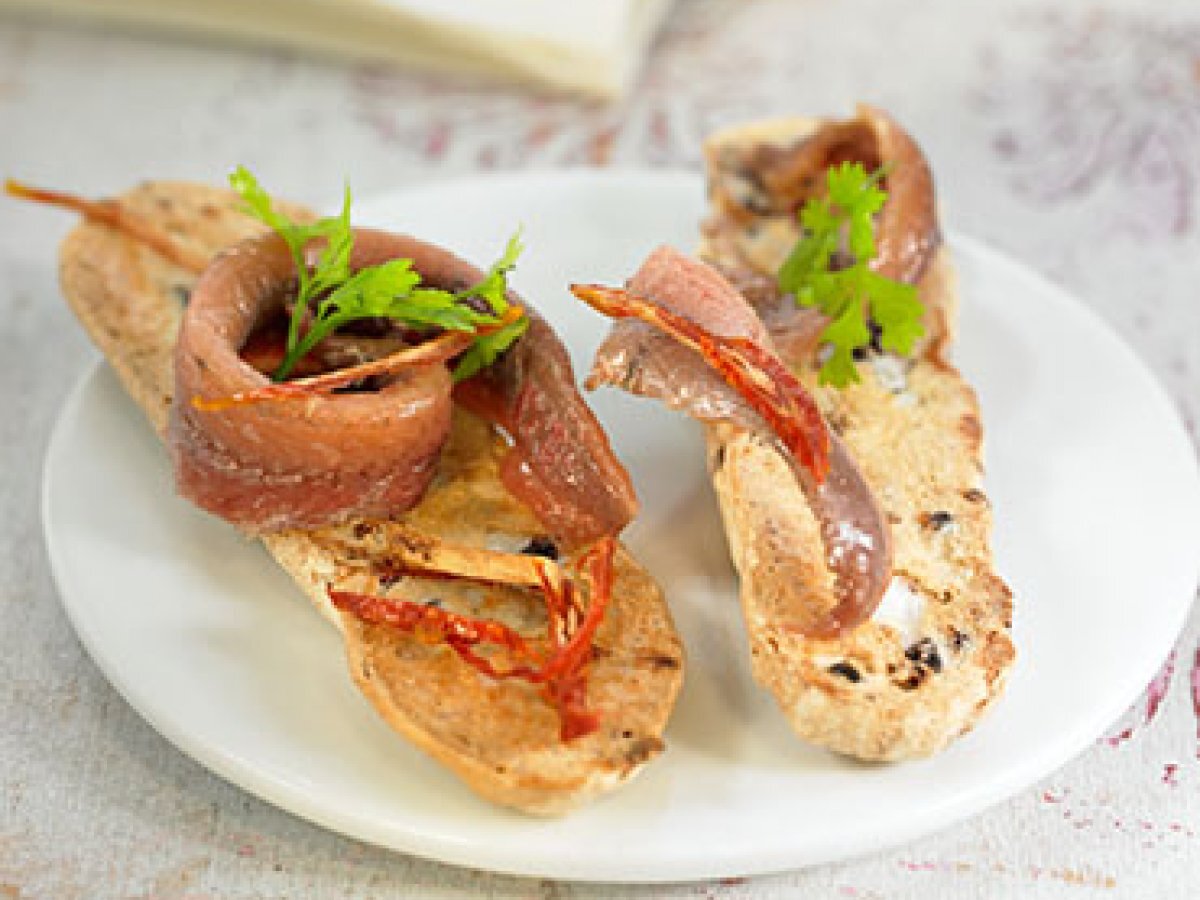 Merengue crujiente con anchoas del cantábrico EntranteFácil20 min Enviar esta receta a un amigo Imprimir esta página Preguntar al autor Publicar la foto de esta receta Ingredientes 8 1 lata de Anchoas del Cantábrico de Conservas Serrats 125 g de claras de huevo 125 g de azúcar 4 tomates secos en aceite 5 g de olivas de Aragón deshuesadas