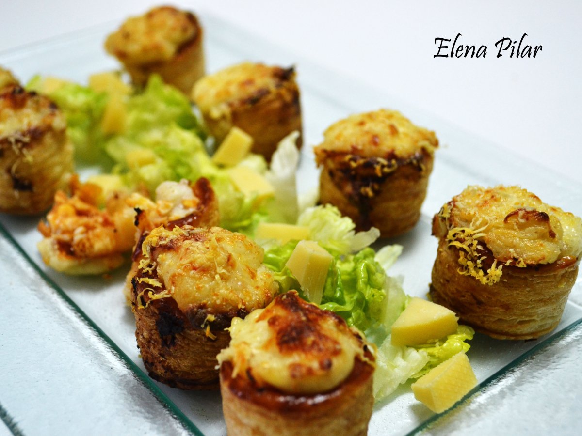 Consiste en unos mini volovanes gratinados y rellenos de una mezcla de atún o bonito en aceite, huevo cocido y salsa de tomate.