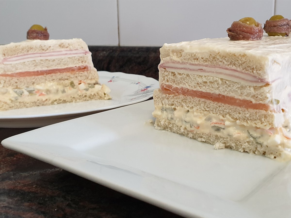 Ponemos una última capa de pan de molde y llevamos a la nevera unas horas para que repose el pastel.
