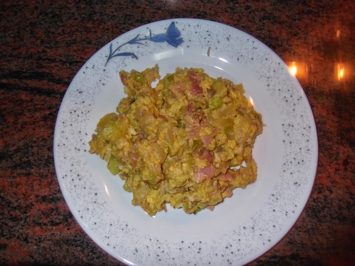 Revuelto de calabacines y jamon york