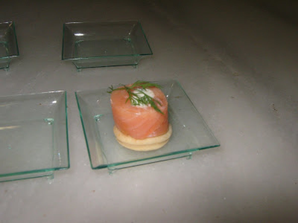 Rollito de salmón y queso EntranteFácil30 min Enviar esta receta a un amigo Imprimir esta página Preguntar al autor Publicar la foto de esta receta Ingredientes 2 1) 107 grs. de mantequilla 53 grs. de agua 5 grs. de sal 214 grs. de harina de repostería 1 grs. de levadura royal. 2) Para los rollitos: salmón ahumado queso de untar, tipo filadelfia cebollino eneldo mostaza