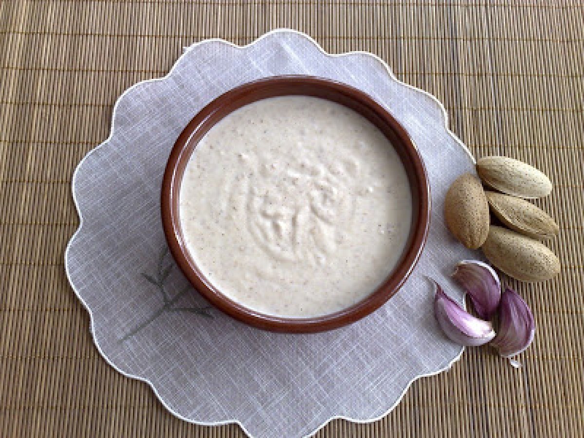 Sopa de ajo: ajo blanco de almeria EntranteFácil10 min117 Kcal Enviar esta receta a un amigo Imprimir esta página Preguntar al autor Publicar la foto de esta receta Ingredientes 4 Pan del día anterior ajos almendras aceite de oliva vinagre sal Costo estimado: 0.84Euros€ (0.21€/porción)