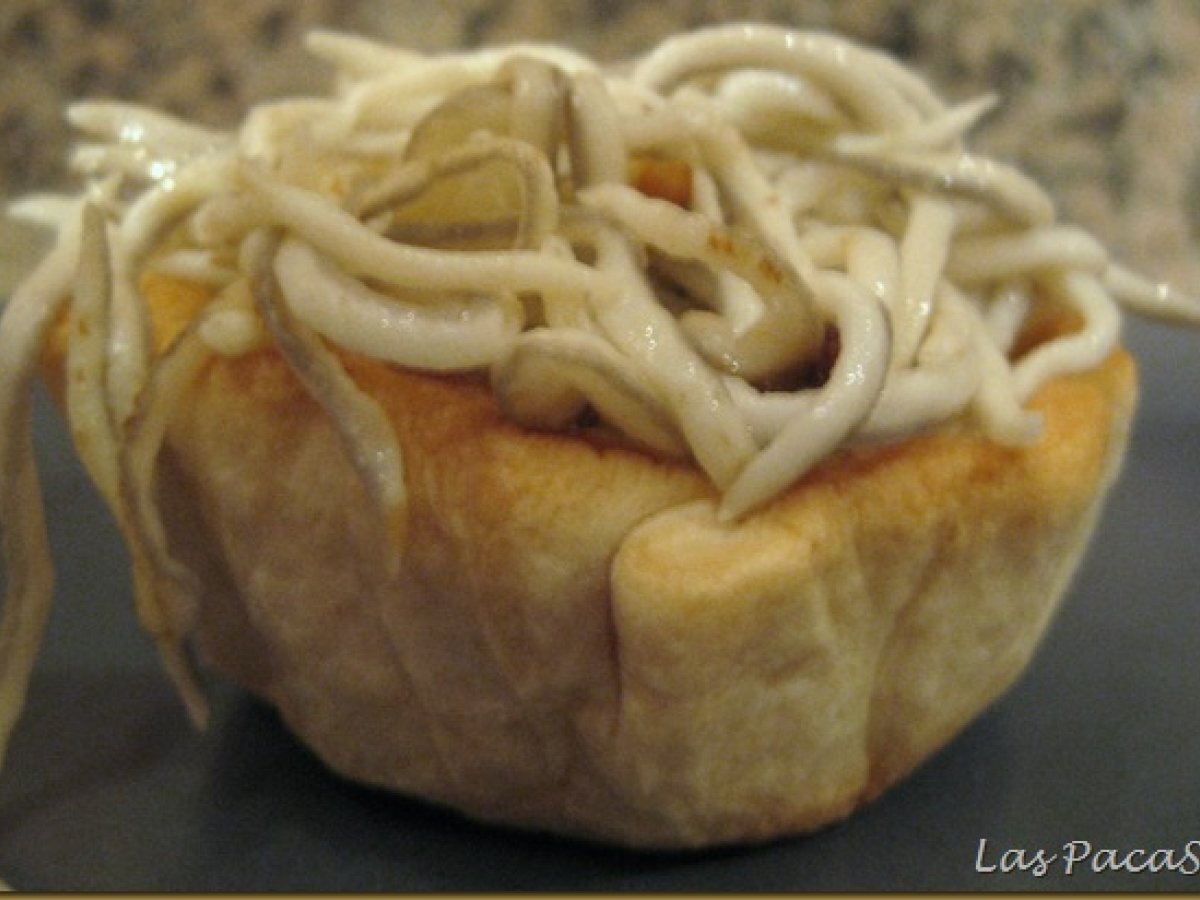 Tartaleta de huevos rotos de codorniz y gulas vota ahora EntranteFácil35 min Enviar esta receta a un amigo Imprimir esta página Preguntar al autor Publicar la foto de esta receta Ingredientes 1 1 paquete de tartaletas 1 docena de huevos de codorniz sal 100 g de gulas 1 diente de ajo cortado en láminas 1 guindilla aceite de oliva