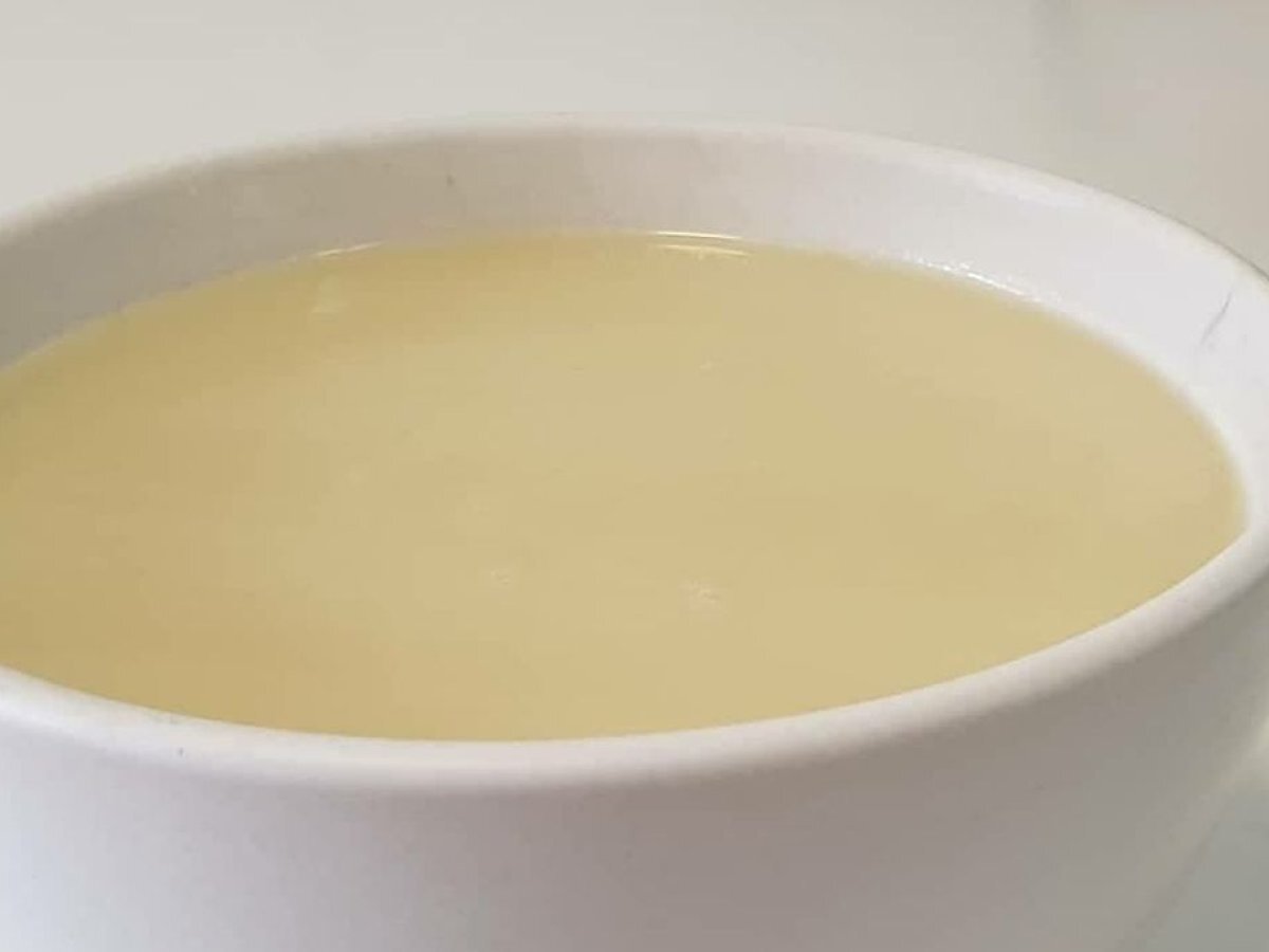 Una vez triturado, añadimos un chorrito de nata, y mezclamos bien. Cocinamos 5 minutos más y ya estaría lista esta deliciosa crema de puerros.
