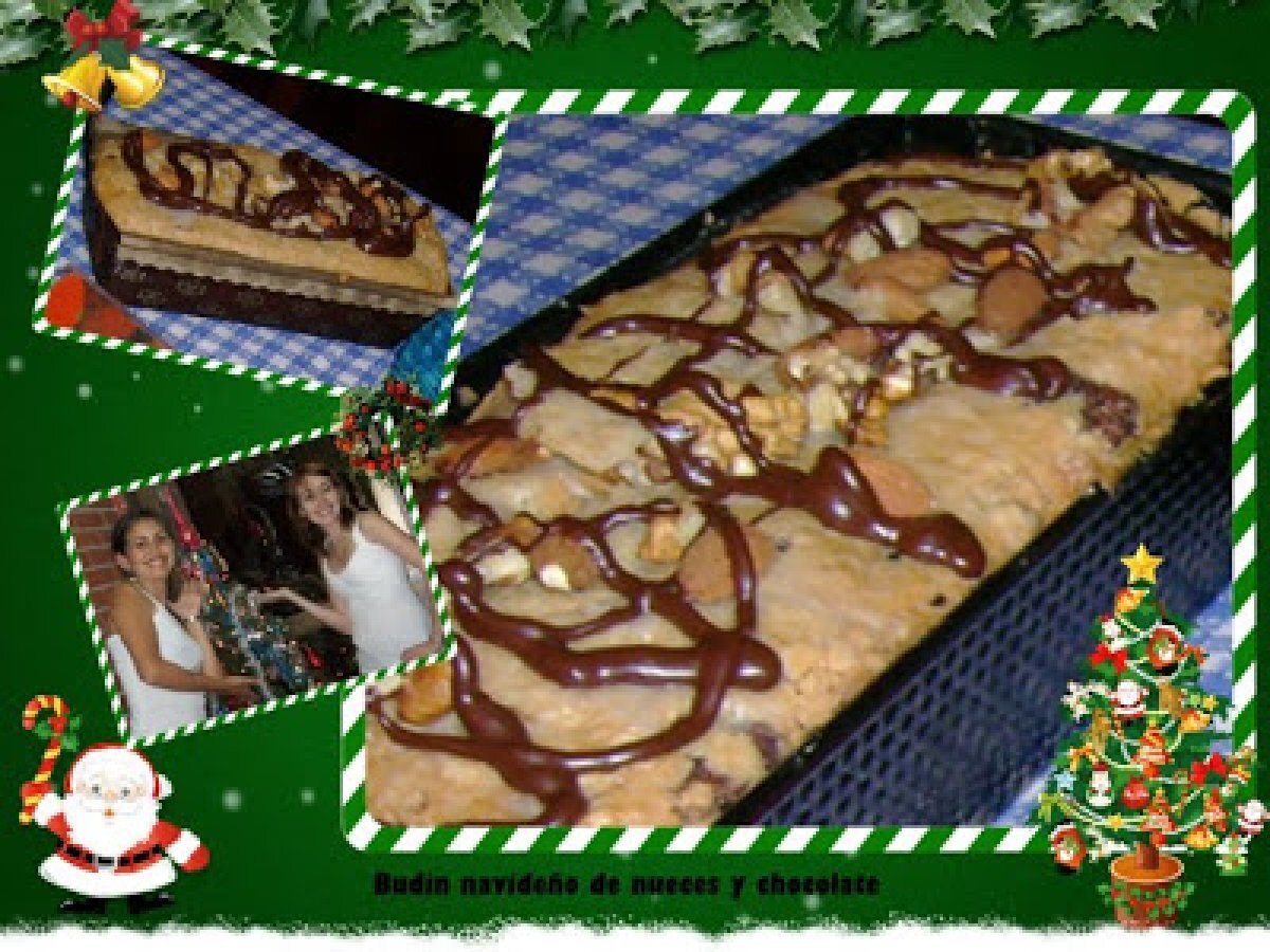 Budín navideño de nueces y chocolate MeriendaFácil45 min Enviar esta receta a un amigo Imprimir esta página Preguntar al autor Publicar la foto de esta receta Ingredientes 4 Manteca, 125 g Azúcar, 1 taza Huevo, 1 Harina, 2 tazas y 1/4 Polvo de hornear, 1 cda Leche, 1/4 taza Nueces picadas pequeñas, 1/2 taza Chispas de chocolate, 1/2 taza Glasé fluido Chocolate cobertura