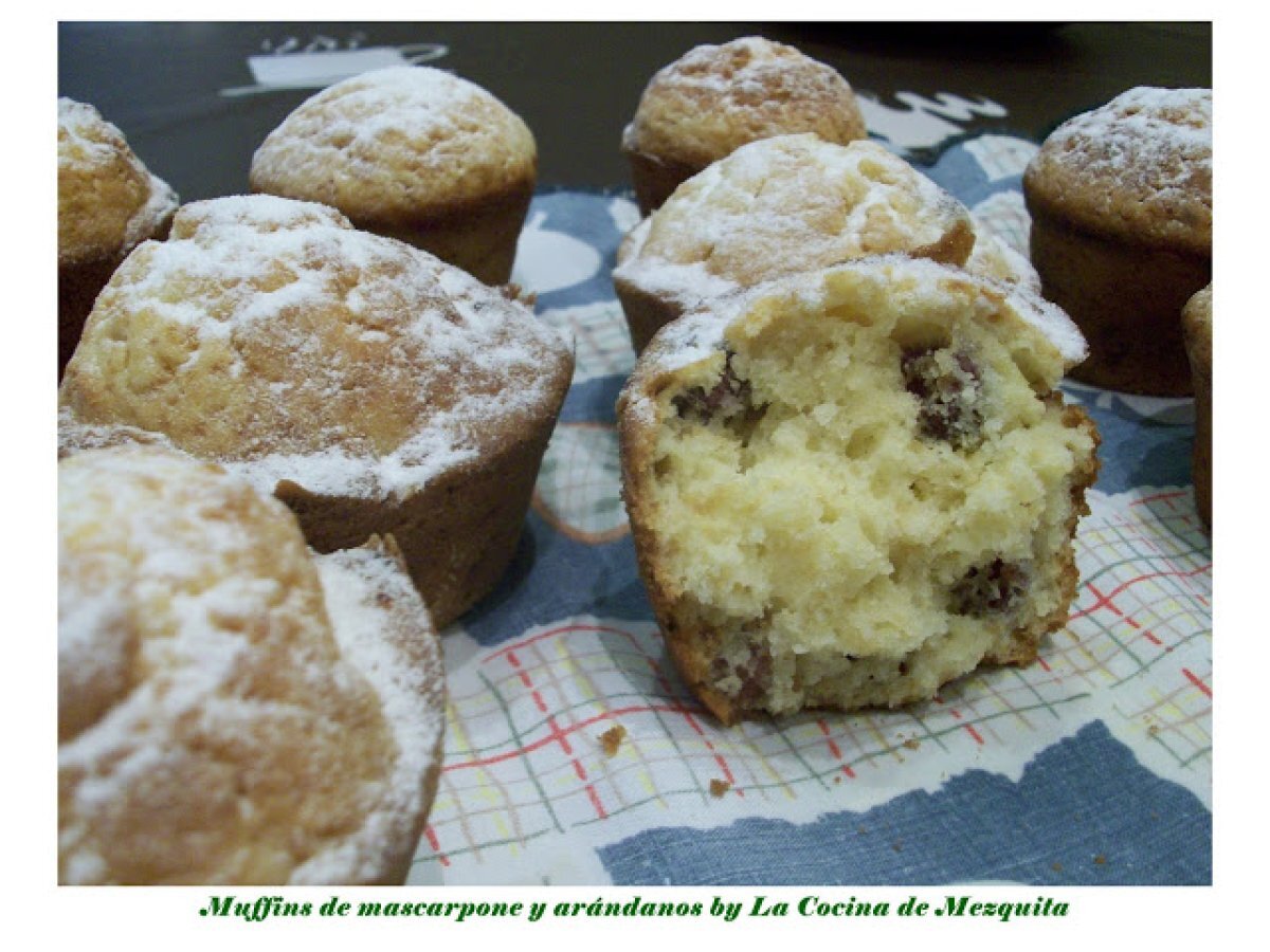 Muffins de mascarpone y arándanos MeriendaFácil45 min Enviar esta receta a un amigo Imprimir esta página Preguntar al autor Publicar la foto de esta receta Ingredientes 3 150 g de mantequilla 200 g de queso mascarpone 150 g de azúcar 3 huevos grandes 300 g de harina 1 sobre de gasificantes del mercadona 100 g de arándanos deshidratados azúcar glas para espolvorear por encima