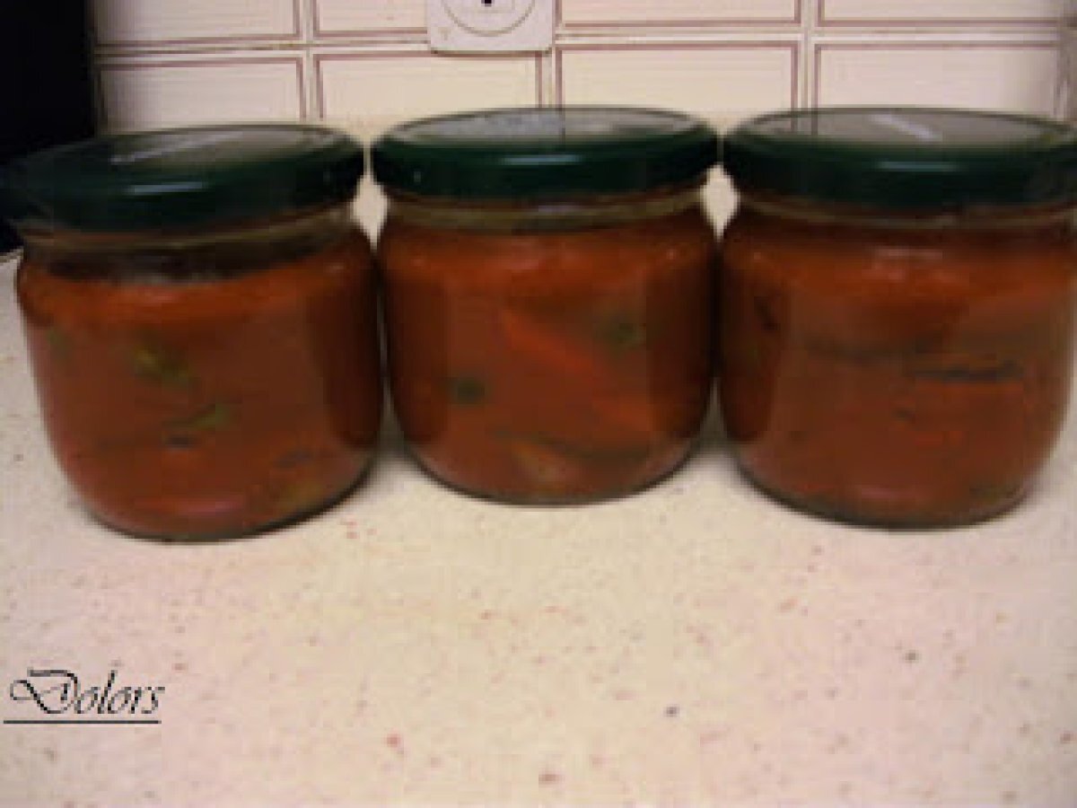 Conserva de tomate y pimientos fritos
