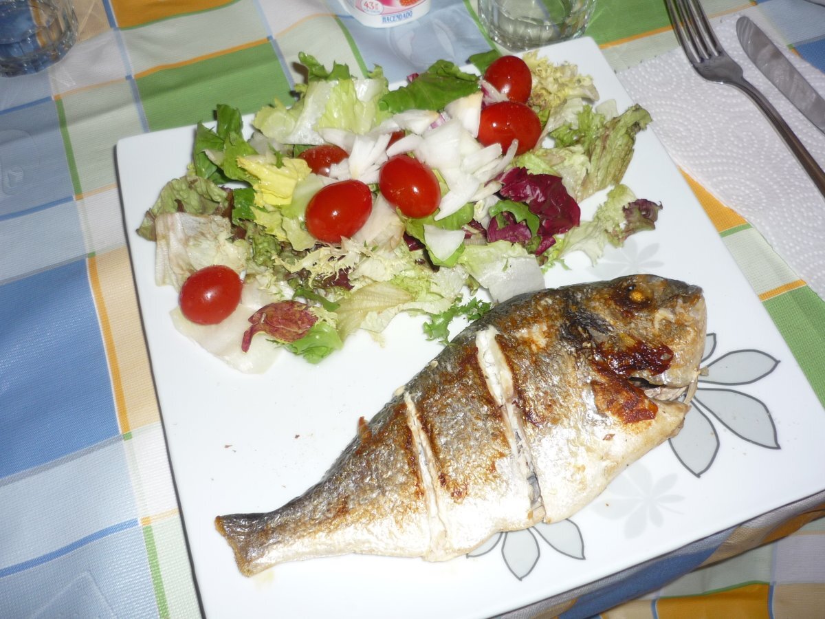 Dorada a la plancha con ensalada OtroFácil25 min39 Kcal Enviar esta receta a un amigo Imprimir esta página Preguntar al autor Publicar la foto de esta receta Ingredientes 8 1 Dorada limpia Mezla de lechugas Tomatitos Cherry Cebollita picada.