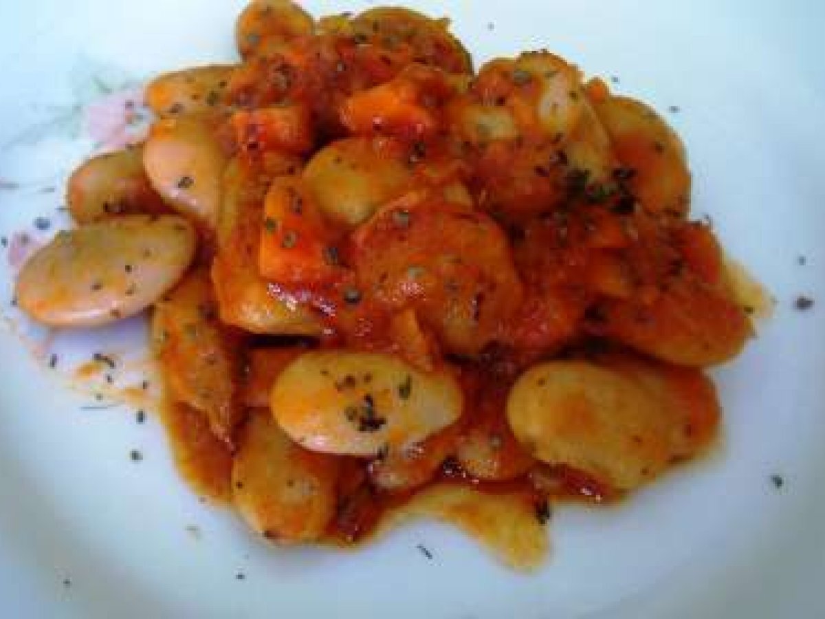 Alubias gigantes con salsa de tomate (yigantes plakí) PlatoMedio1 h 5 m1108 Kcal Enviar esta receta a un amigo Imprimir esta página Preguntar al autor Publicar la foto de esta receta Ingredientes 1 500 gramos de alubias gigantes 100 gramos de puerros 100 gramos de zanahoria 2 cebolletas 1 rama de apio 3 cucharadas de tomate frito 20 gramos de eneldo 1 hoja de laurel 1/2 cucharada de pimentón Aceite de Oliva Sal
