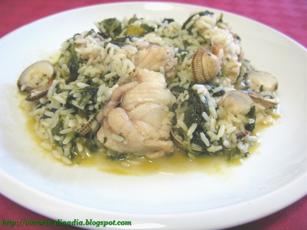 Arroz caldoso con rape, grelos y berberechos PlatoMedio50 min Enviar esta receta a un amigo Imprimir esta página Preguntar al autor Publicar la foto de esta receta Ingredientes 2 1 rape 1 manojo de grelos 1 puñado de berberechos 350 g de arroz 1 cebolla pequeña aceite, sal, nuez moscada y pimienta blanca recien molida.