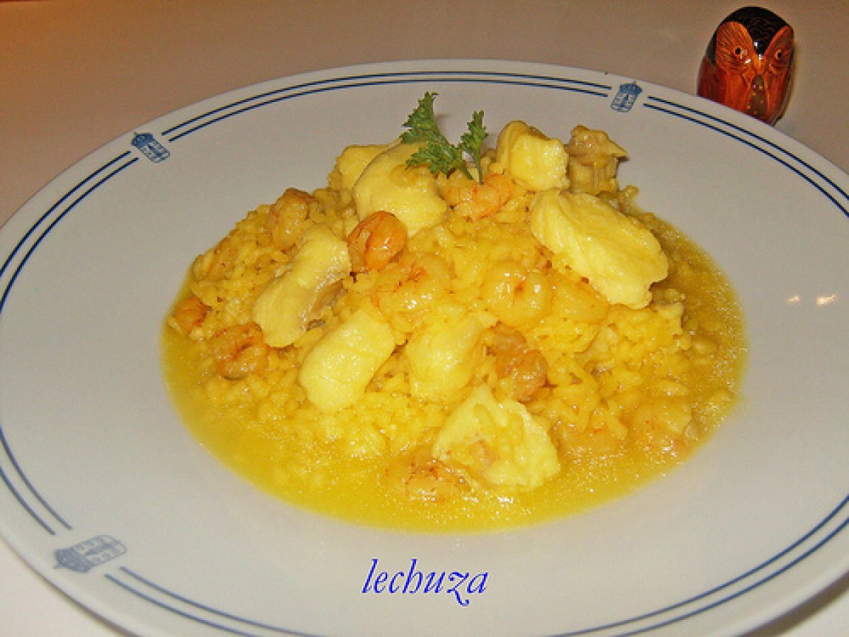 Arroz caldoso de rape y gambas