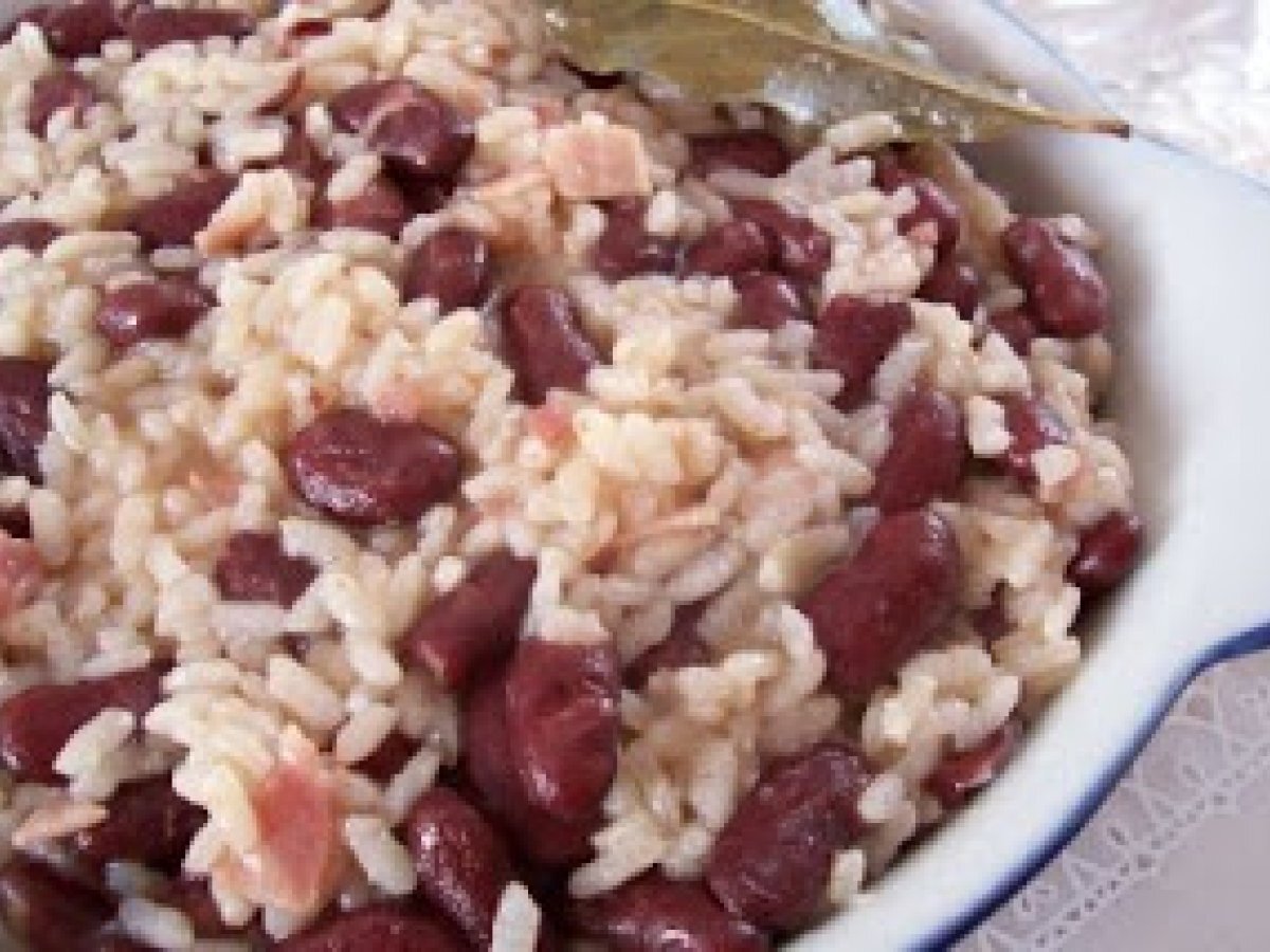 Arroz con frijoles - comida cubana PlatoFácil35 min Enviar esta receta a un amigo Imprimir esta página Preguntar al autor Publicar la foto de esta receta Ingredientes 2 3/4 libra de frijoles rojos cocinados en 6 tazas de agua 1 1/2 libra de arroz grano largo 2 cebolla grande picada 4 dientes de ajo picados ½ de un ají 4 cucharadas de aceite de oliva 1 cucharada de sal ¼ cucharadita de orégano, laurel y de pimienta y comino 1 hoja de laurel 2 cucharadas de aceite de oliva