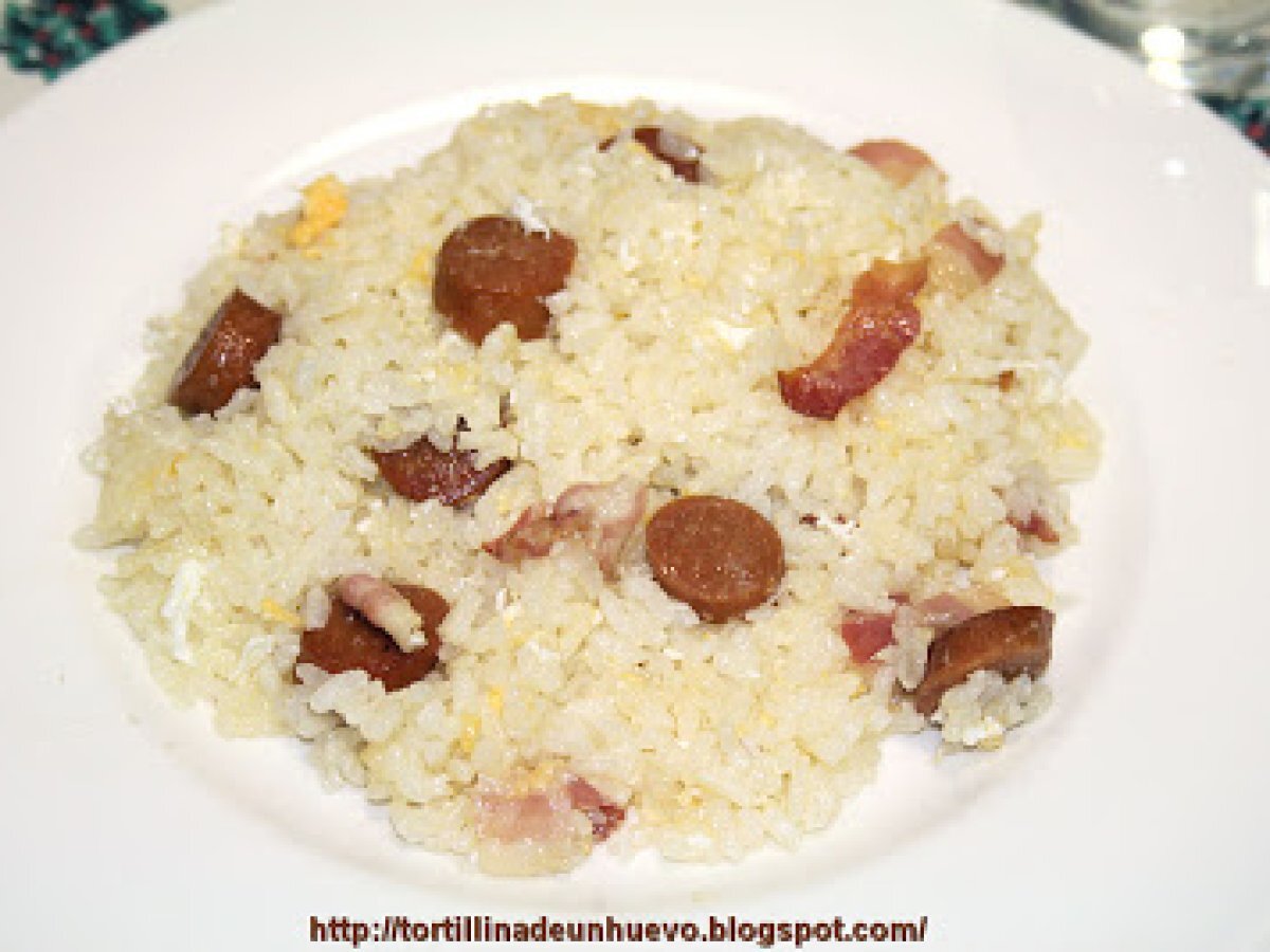Arroz frito con bacon y frankfurt PlatoMedio50 min884 Kcal Enviar esta receta a un amigo Imprimir esta página Preguntar al autor Publicar la foto de esta receta Ingredientes 2 250 g arroz 4 salchichas de frankfurt 4 lonchas de bacon 1 diente de ajo 2 huevos Costo estimado: 3.19Euros€ (1.59€/porción)