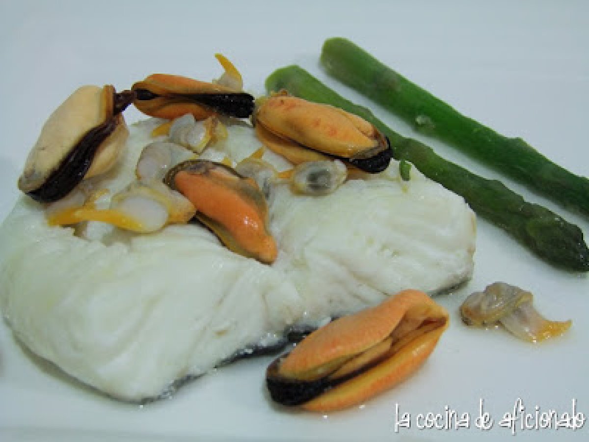 Bacalao al vapor con mejillones y berberechos PlatoFácil1 hora Enviar esta receta a un amigo Imprimir esta página Preguntar al autor Publicar la foto de esta receta Ingredientes 6 1 suprema de bacalao fresco 4 o 5 mejillones 6 u 8 berberechos 2 espárragos trigueros Un poco de vino blanco 1/2 l de agua Sal