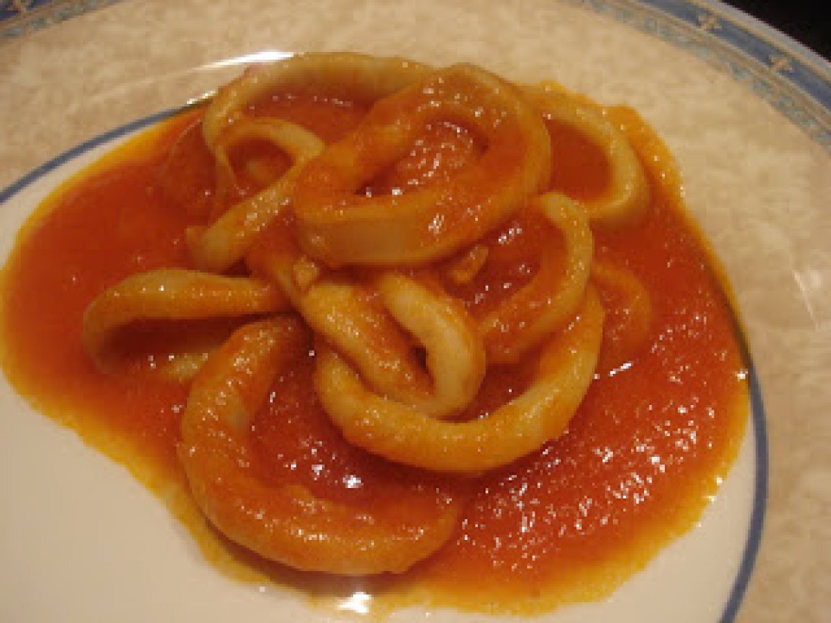 Calamares en salsa americana (fussion cook) PlatoFácil35 min92 Kcal Enviar esta receta a un amigo Imprimir esta página Preguntar al autor Publicar la foto de esta receta Ingredientes 2 2 dientes de ajo 1 cebolla grande anillas de calamar (sobre 500 g) 1 lata de tomate frito 1/2 pastilla de caldo de pescado pimienta 50 g de vino blanco Costo estimado: 2.11Euros€ (1.06€/porción)