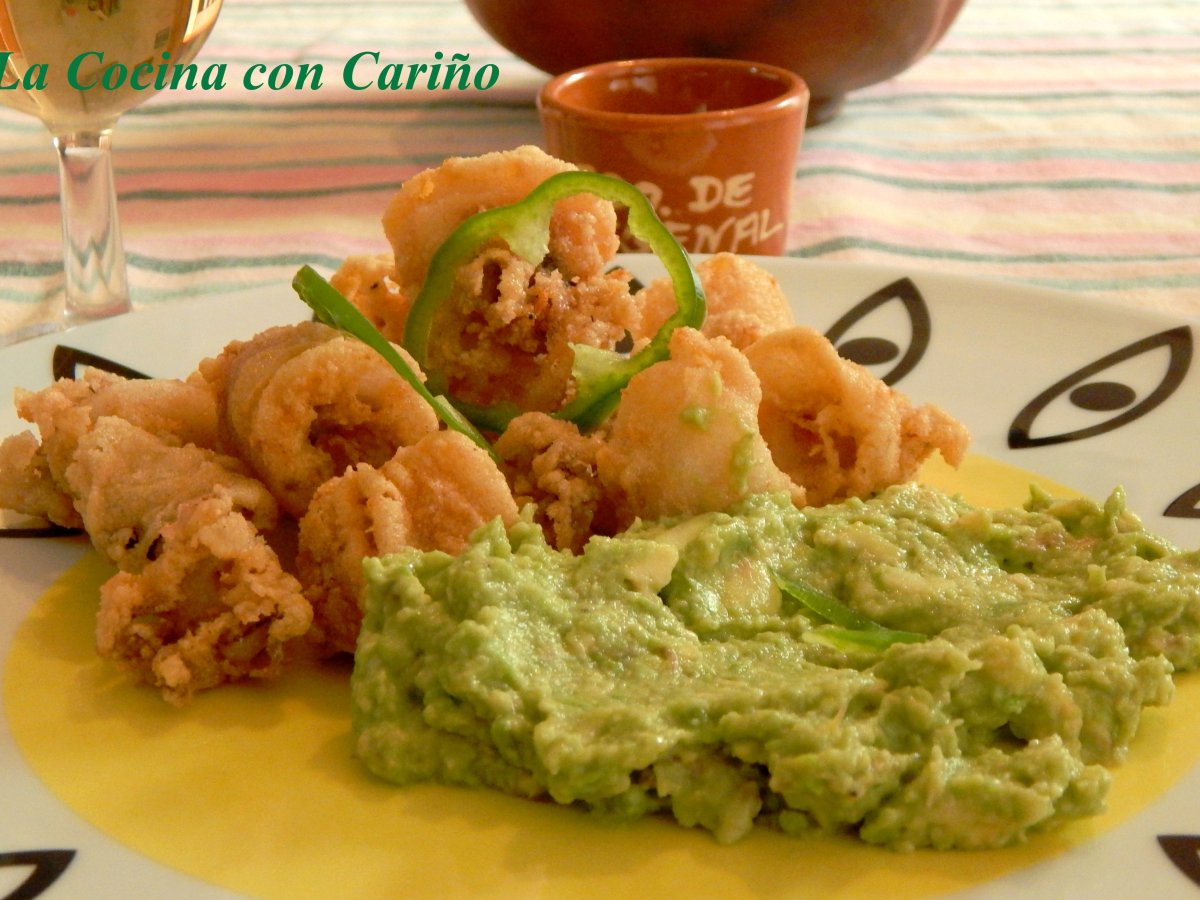 Esta receta es de lo más sencilla. La combinación se la vi preparar al cocinero Británico Jaime Oliver, un extravagante delicioso. Me encanta la sencillez y lo hiperactivo que es este tío. Claro está, siendo de Cádiz y adorando el pescao frito, pues alguna modificación tiene, en cuanto a concepto y técnica. Por lo demás la receta es perfecta.
