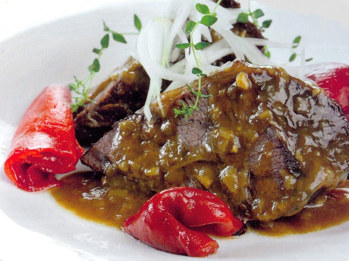 Carrilleras de ternera con piquillos confitados PlatoMedio35 min Enviar esta receta a un amigo Imprimir esta página Preguntar al autor Publicar la foto de esta receta Ingredientes 2 2 kg de carrillera de ternera 2 tomates rojos 1 cebolla 2 cebolletas 1 puerro 1 zanahoria 1 cabeza de ajos 10 chalotas 200 ml de brandy 1 botella de vino tinto 1 pizca de pimienta negra recién molida 1 ramita de tomillo 1 ramita de romero 10 clavos de olor 1 cucharada de granos de pimienta negra 1 rama de canela aceite de oliva sal Para los piquillos confitados 16 piquillos 4 dientes de ajo 1 cucharada de azúcar aceite de oliva sal