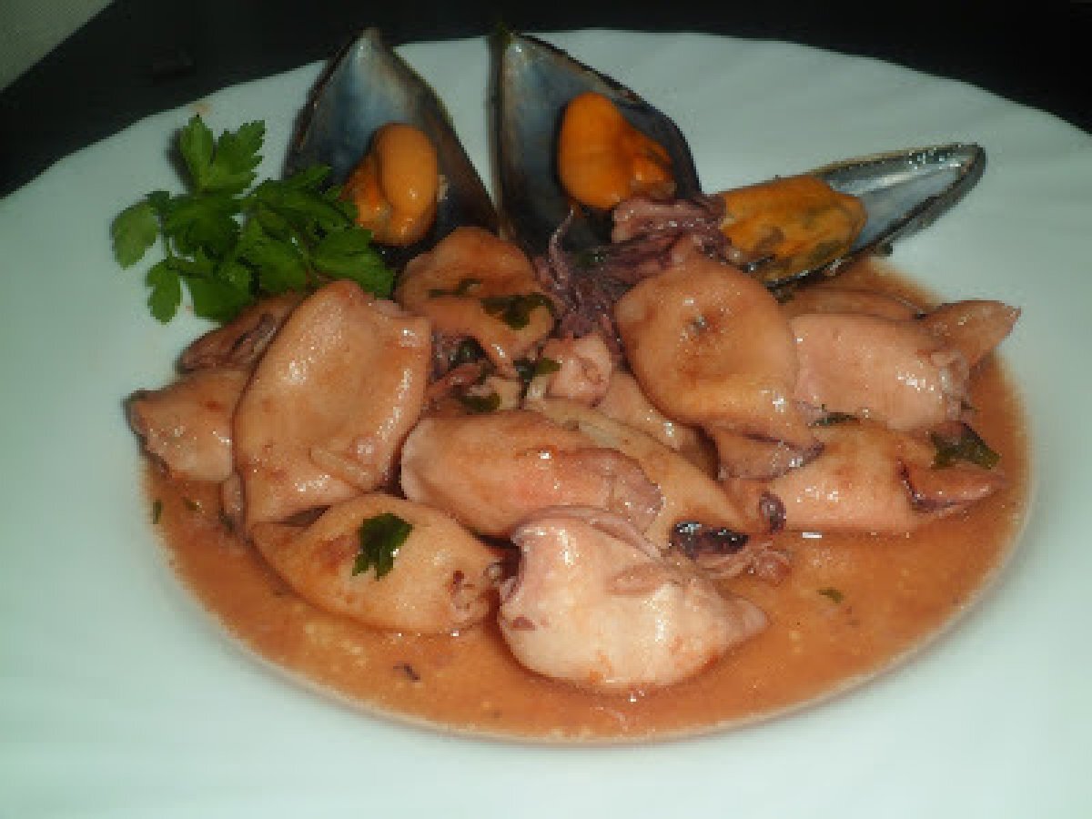 En poco tiempo podemos tener listo un plato muy bueno, unos chipirones en salsita de cerveza y unos mejillones.