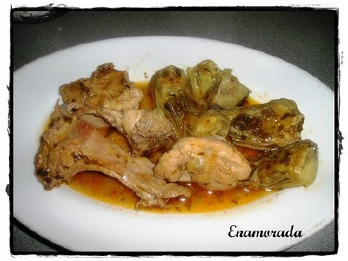 Conejo con alcachofas a las finas hierbas vota ahora PlatoFácil55 min Enviar esta receta a un amigo Imprimir esta página Preguntar al autor Publicar la foto de esta receta Ingredientes 2 1 Conejo troceado 1 pimiento verde troceado 2 ajos laminados 2 cucharadas de tomate frito 1 buen chorreón de finas hierbas 1 cuacharada de mostaza 1 vaso de vino blanco si es necesario un vaso de agua 1 Estarlux 5 alcachofas en cuartos 1 limón 1 cucharada de harina aceite