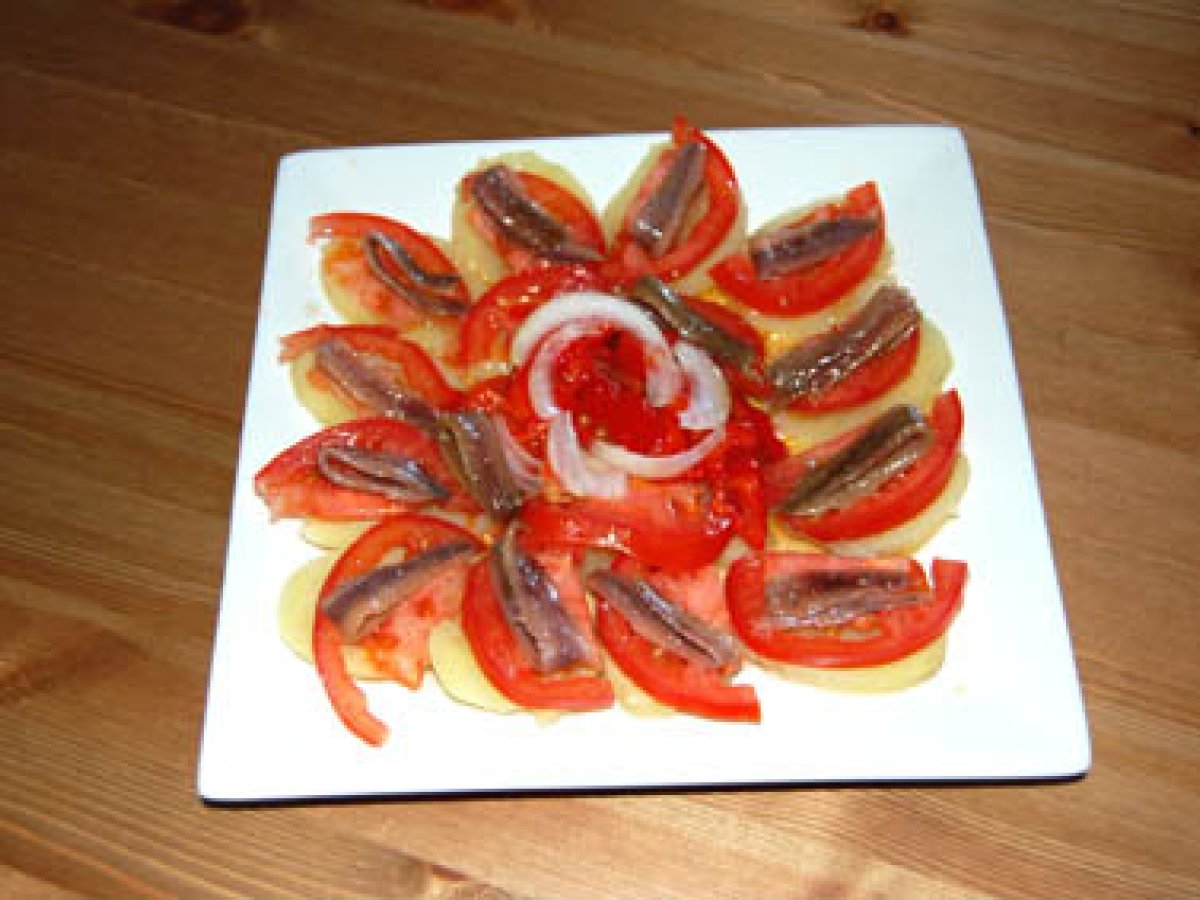 Ensalada de patatas, pimientos y anchoas