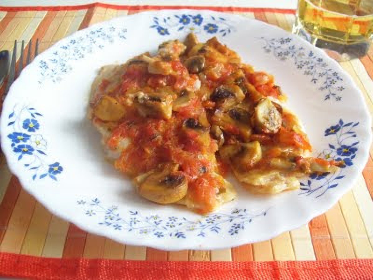 Filetes de pescado con tomate y champiñones