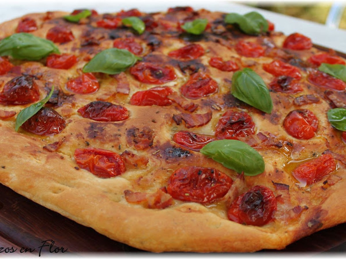 Focaccia de tomate y bacon - focaccia de aceitunas y romero