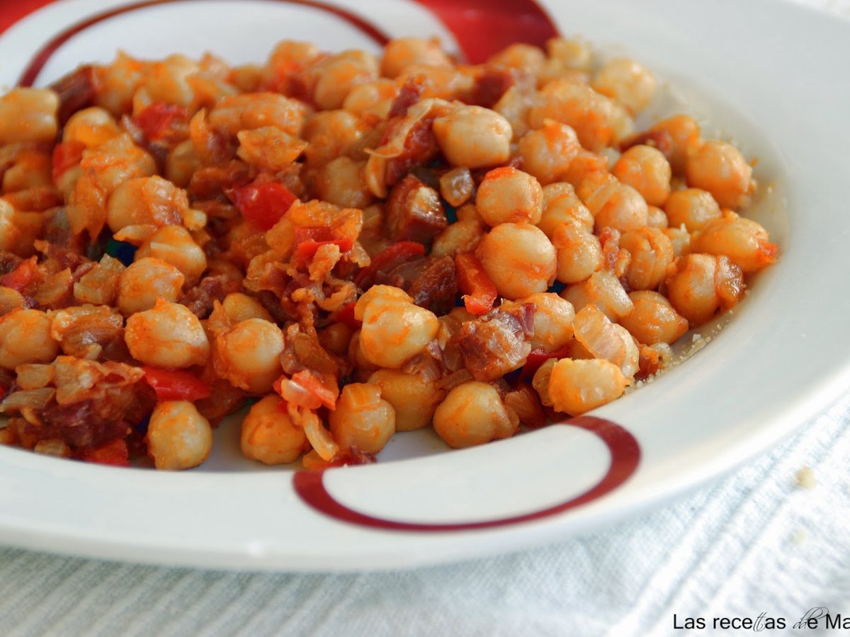 Ya queda menos para que llegue el esperado puente...pero mientras debemos esperar sólo una semanita más, así que para no quebrarnos mucho la cabeza, os traigo una receta muy facilita y muy rica, sólo nos robará unos minutos de nuestro tiempo. Se trata de unos buenos garbanzos con chorizo y jamón serrano.