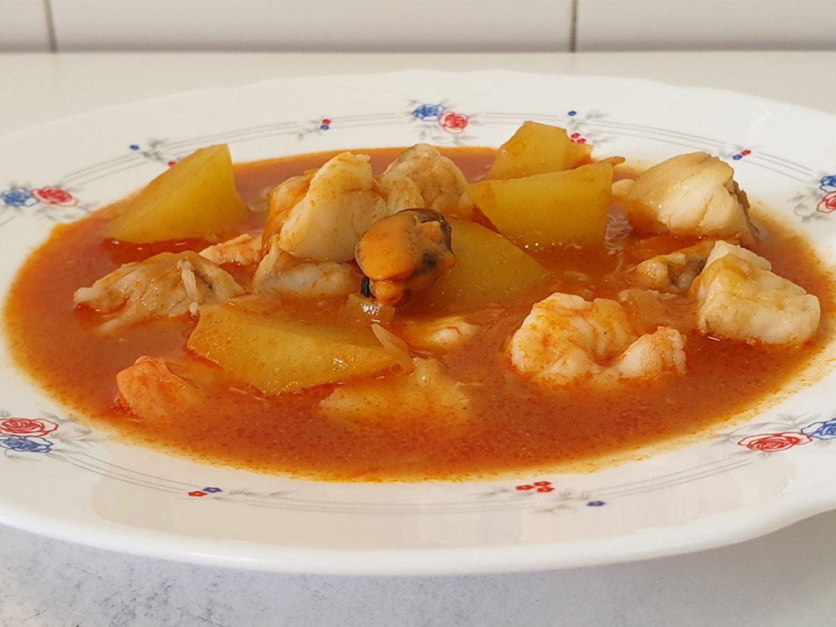 Guiso de rape y langostinos