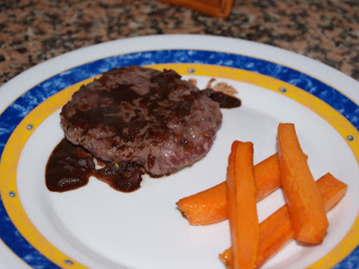 Hamburguesa de retinto con salsa de cacao PlatoFácil35 min753 Kcal Enviar esta receta a un amigo Imprimir esta página Preguntar al autor Publicar la foto de esta receta Ingredientes 2 500 g de carne magra de retinto 1 yema de huevo 3 cucharadas de pan rallado Aceite Para la salsa: 1/2 cebolla 1/2 vaso de vino tinto 1 cucharada sopera de cacao en polvo puro 1/2 cucharada rasa de azúcar Aceite Sal Pimienta negra molida Costo estimado: 5.79Euros€ (2.89€/porción)