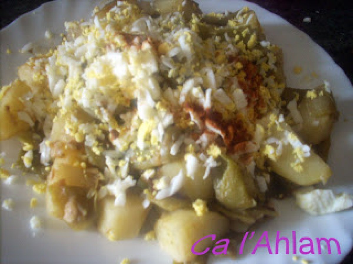 Judías verdes con patatas salteadas PlatoFácil45 min335 Kcal Enviar esta receta a un amigo Imprimir esta página Preguntar al autor Publicar la foto de esta receta Ingredientes 4 500 g de judías verdes 4 patatas 1 cebolla 2 dientes de ajo aceite de oliva pimienta negra y pimentón picante sal 1 huevo duro rallado Costo estimado: 2.69Euros€ (0.67€/porción)
