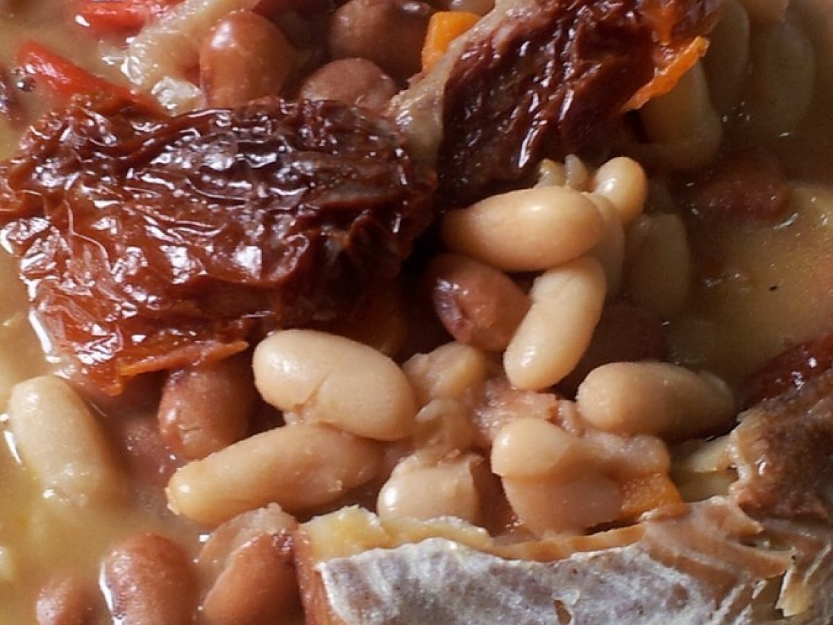Legumbres bicolor con bacalao y tomates secos de caspe