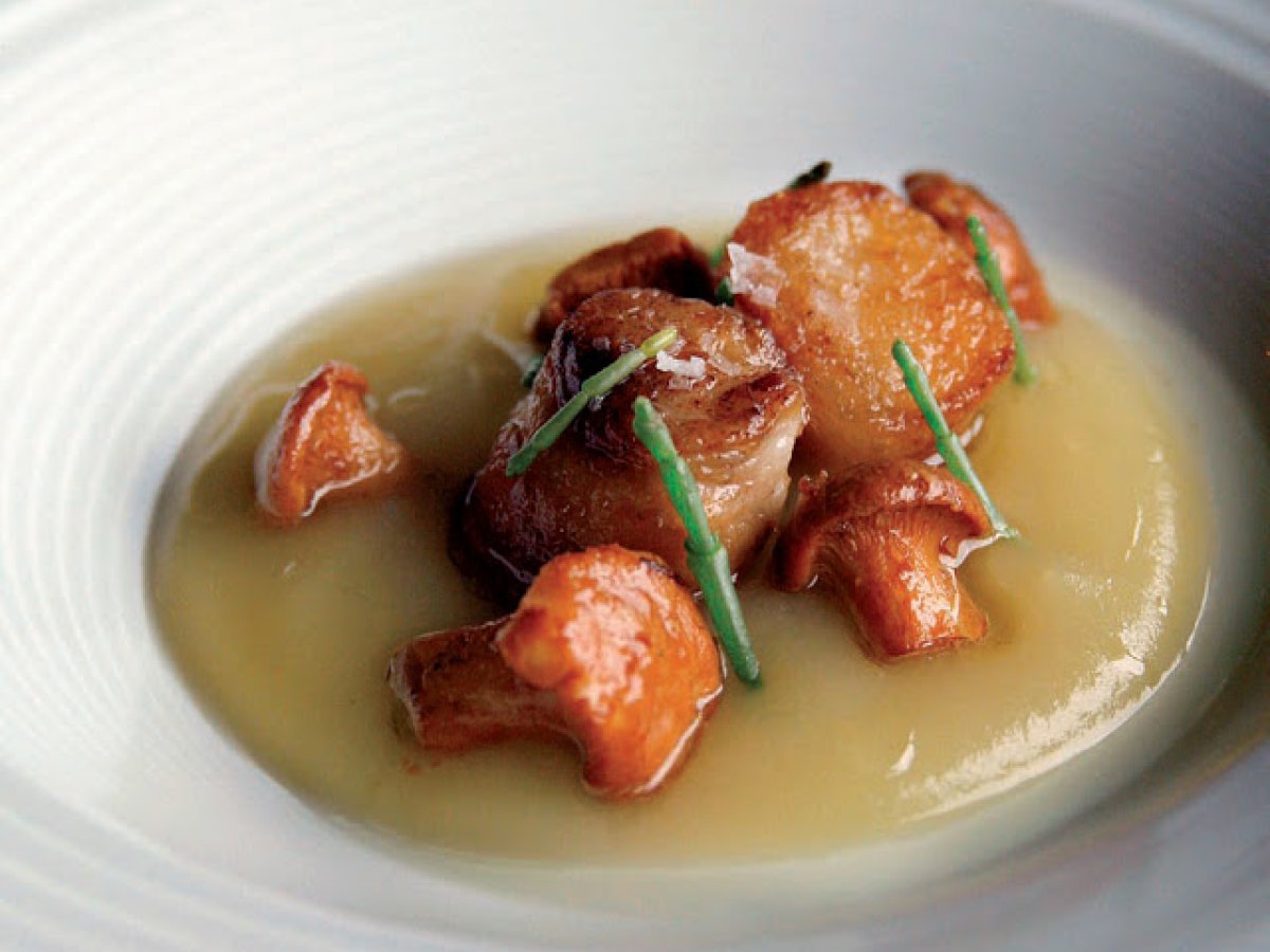 Medallones de solomillo de cerdo ibérico con puré de manzana y rebozuelos PlatoFácil40 min195 Kcal Enviar esta receta a un amigo Imprimir esta página Preguntar al autor Publicar la foto de esta receta Ingredientes 4 1 solomillo de cerdo ibérico 2 manzanas 1 cucharada de vino albariño 16 rebozuelos pequeños 1 copa de brandy romero pimienta blanca recién molida aceite sal