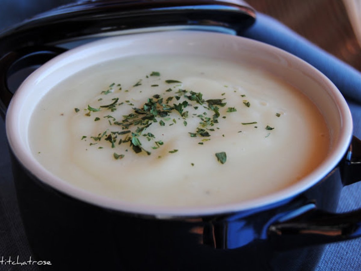 Vichyssoise de puerro, julia child inspiration PlatoFácil40 min196 Kcal Enviar esta receta a un amigo Imprimir esta página Preguntar al autor Publicar la foto de esta receta Ingredientes 2 una patata mediana pelada una taza de puerros en rodajas 500 ml de caldo de pollo y verduras sal y pimienta blanca 50 ml de nata ligera para cocinar. Costo estimado: 1.28Euros€ (0.64€/porción)