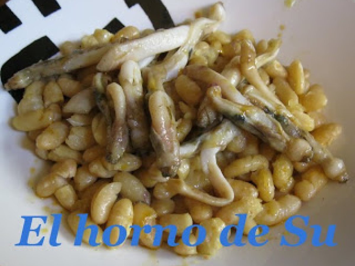 Menú homenaje a santi santamaría: judías con navajas y helado de vainilla vota ahora PlatoFácil45 min Enviar esta receta a un amigo Imprimir esta página Preguntar al autor Publicar la foto de esta receta Ingredientes 4 250 g de judías blancas un paquete de navajas 2 ramas de apio 1 blanco de puerro 1 zanahoria 1 escalonia 1 diente de ajo sal y pimienta 3 cucharadas soperas de aceite de oliva 1 diente de ajo 1 guindilla 1 cucharadita de pimentón picante