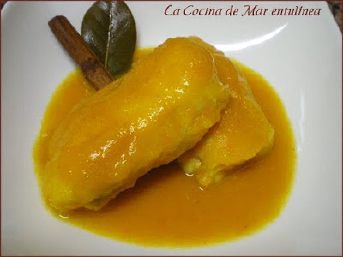 Merluza en salsa de naranja en fc PlatoFácil30 min Enviar esta receta a un amigo Imprimir esta página Preguntar al autor Publicar la foto de esta receta Ingredientes 2 Merluza "a saciedad" 2 Zanahorias 1 cebolla grande 1 Clavo de olor 1 hoja de laurel 1 palito de canela 2 cts de aceite zumo de 2 naranja 1/2 vaso de agua Un chorrito de vino blanco 1/2 pastilla de caldo de pescado